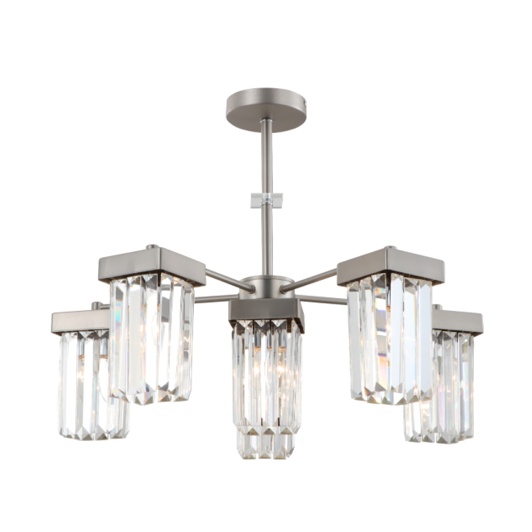 నికెల్ ఫినిషింగ్: స్ట్రాంగ్ యొక్క 6-లైట్ నికెల్ ఆధునిక K9 క్రిస్టల్ సీలింగ్ షాన్డిలియర్ యొక్క పాలిష్, యాంటీ-టార్నిష్ నికెల్ ఉపరితలం ఆధునిక లోహ స్పర్శను జోడిస్తుంది, ఇది తటస్థ మరియు బోల్డ్ అలంకరణలను పూర్తి చేస్తుంది.